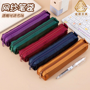 女の子用筆箱 2025 新しい大容量透明メッシュシンプルミニ高見えインスタイルロング文具バッグ学生試験透明ペンバッグ試験室に入る