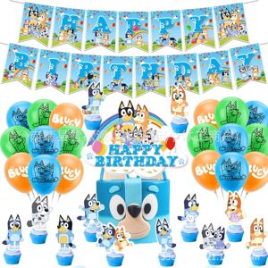 新品 蓝色布鲁伊2 主题派对用品拉旗横幅蛋糕插排气球装饰