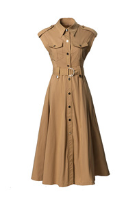 2025年夏クロスボーダーヨーロッパとアメリカの女性用小さなラペルコットンヘビーデューティープレスラインカジュアルワークウェアワイドスカートドレス