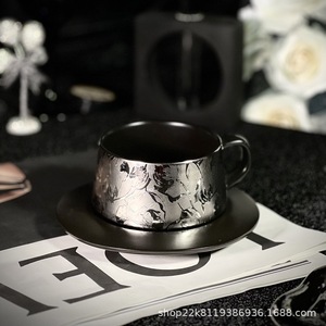熱い販売のアンティークスタイルのライト高級チタンメッキセラミックコーヒーカップとソーサー、ファッショナブルでシンプル、軽い高級感、高見えするマグカップとソーサー
