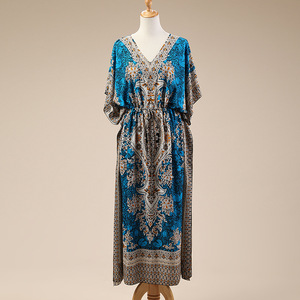 ローブエスニックプリントルーズレーヨンドレス海辺休暇ロングドレスボヘミアンエキゾチックビーチドレス