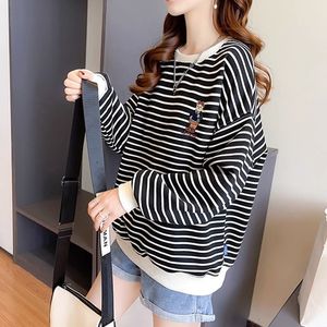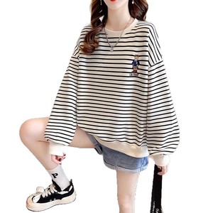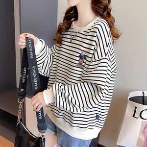 2025春秋ストライプスウェットシャツ女の子新スタイル中学生・高校生ゆったり長袖Tシャツフードなしトップス