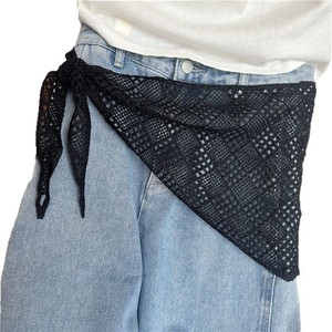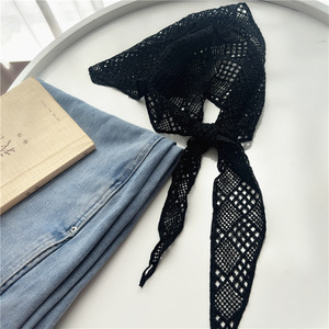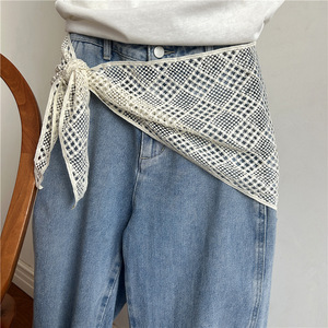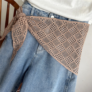 レトロチェック柄三角スカーフレースバットカーテンベルト女性のジーンズレースアップ無地シルクスカーフウエスト装飾アクセサリー