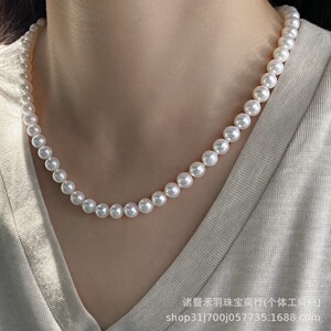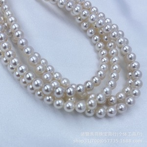 諸及び山下湖天然淡水無核真珠7-8mm超亮正円無傷ネックレス