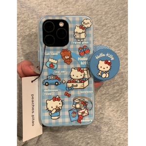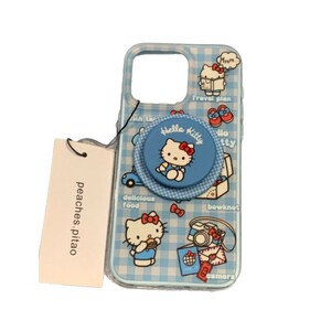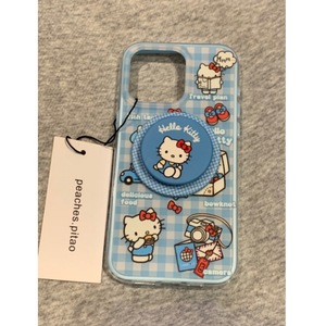 ブルーチェック柄クマ車 KT 磁気吸引ケース Apple 16promax 携帯電話ケース iPhone15pro14 女性に適しています