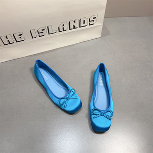 フラットシューズ フレンチスタイル 浅口パンプス レディース ブルー 2025春秋 サテン シルバー バレエシューズ おしゃれ 多用途