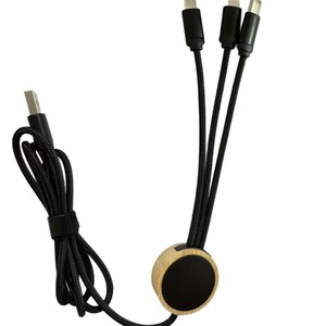 国境を越えた環境に優しい竹と木材の 1 対 3 発光データ ケーブル スリーインワン高速充電データ ケーブル発光ロゴ ギフト