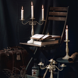 ヨーロッパのレトロな古い鉄燭台キャンドルライトディナー撮影小道具ホームウェディングデスクトップ装飾