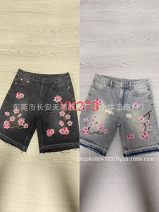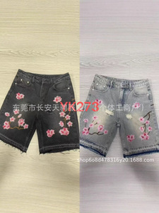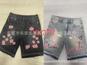 トレンディで多用途なファッショナブルなショートパンツ、クロスボーダー外国貿易、アメリカンレトロなパーソナライズされたストリートフラワー刺繍デニムショートパンツ、男性と女性用