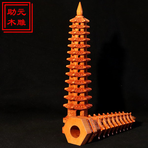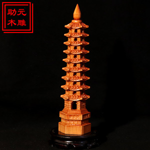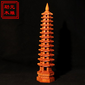 桃木透かし彫り文昌塔九階十三階整木彫刻中空塔事務室書斎創意家庭装飾品