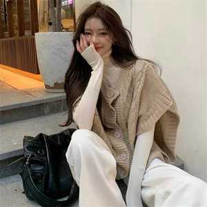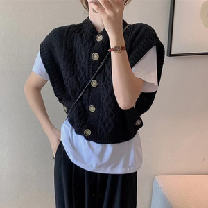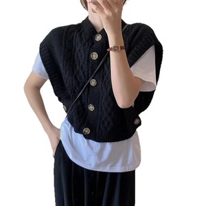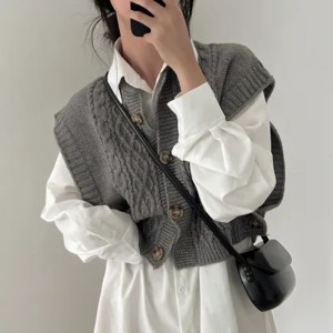 韓国風ベストノースリーブトップス秋ファッションゆったり麻模様ニットカーディガンレディースセーターベスト女性用万能アイテム