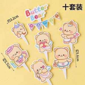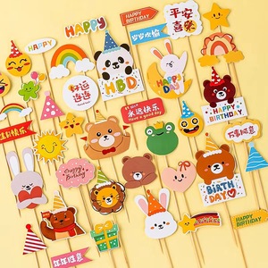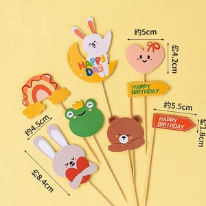Insシンプル誕生日ケーキ装飾イラストかわいいベアーウサギ笑顔デザートパーティー衣装プラグインイラスト