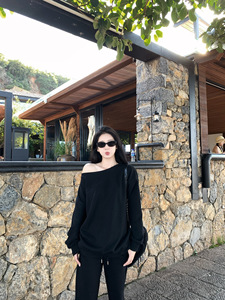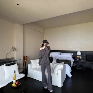 小君君布兰妮 露思套装/斜肩宽松卫衣+高腰显瘦微喇裤王炸套装女