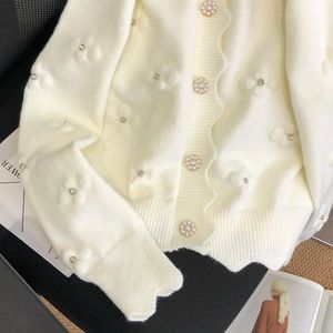 ホワイトセレブ刺繍ニットカーディガン 2025 初春トップフラワーセータージャケット春の新作アウターウェア女性
