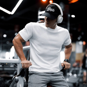 黑色正肩收袖口t恤夏季成熟稳重男装轻熟内搭短袖显肌肉健身半袖