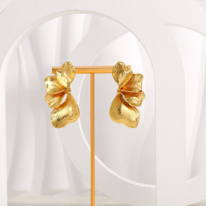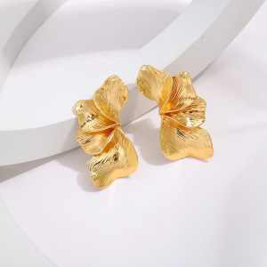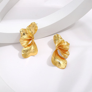 クロスボーダーのレトロな誇張の多層の木目感の花卉の葉のイヤリングの優雅な気質の軽い贅沢な高級感の通勤のピアス