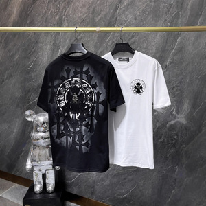 クロスボーダー 2025 夏新作 CH クロウパッチメタルクロスプリント半袖 Tシャツ男性と女性の同じスタイル Tシャツ