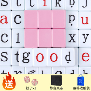 ピンクの小文字英語麻雀【無料収納袋+サイコロ_2+サイレントテーブルクロス】