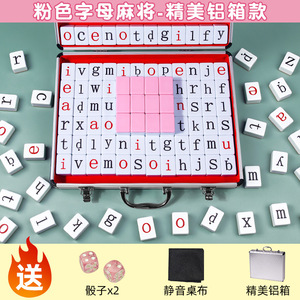 ピンクの小文字英語麻雀【携帯用アルミボックス+サイコロ_2個+サイレントテーブルクロス付き】