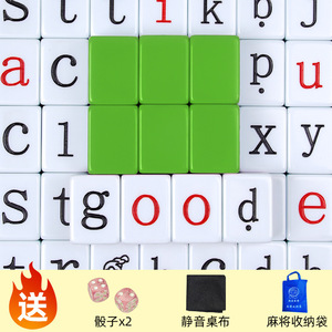 緑の小文字英語麻雀【携帯用アルミボックス+サイコロ_2+サイレントテーブルクロス付き】