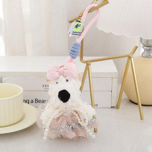 爆款西高地潦草小狗挂件毛绒玩具包包钥匙扣粉色公主裙可爱挂饰