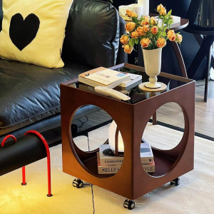 レトロなアンティークリビングルーム可動ティーサイドテーブルソファトロリーベッドサイドテーブル無垢材籐織り小さなテーブル収納ラックコーナーテーブル