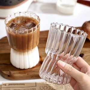 縦縞コーヒーカップメーカー高ホウケイ酸ガラスアイスアメリカンコーヒーカップ縦縞ウエストシングルカップドリンクカップ