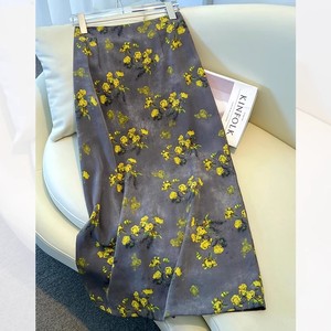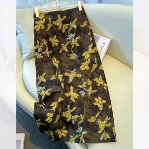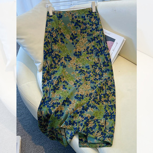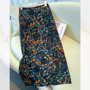 ハイエンドアセテート花柄スカートミドル丈レディース2025年夏新作プリントドレープAラインヒップスカート
