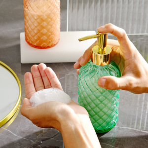 Amazon 手指消毒剤ボトル、菱形ガラスソープボトル、シャンプーとシャワージェルボトル、ステンレス鋼ポンプヘッドのドロップシッピング