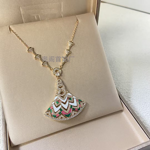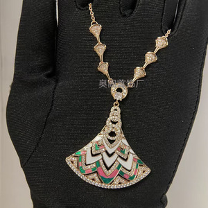 ヨーロッパとアメリカの Baohjia ハイエンド大型カラフルなパターンスカート扇形ネックレス女性用 18K ローズゴールドメッキ高炭素ダイヤモンド