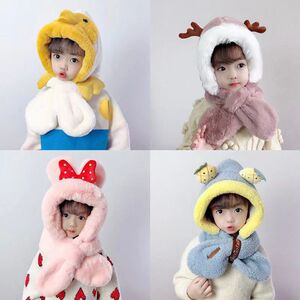 儿童帽子围巾一体毛绒加厚保暖护耳帽可爱鹿角男女孩防风超萌百搭