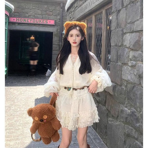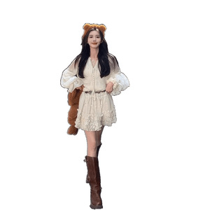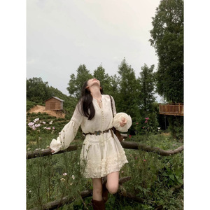 白色一颗甜桃逃跑计划连衣裙长袖新款灯笼袖显瘦春夏短裙女