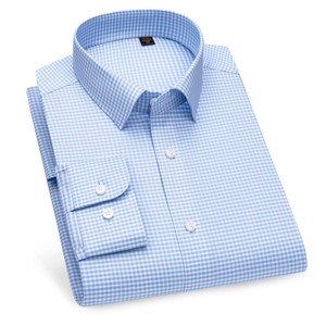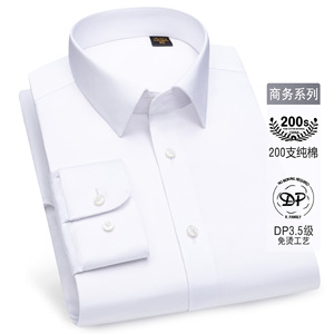 200 カウント純綿 DP ノーアイロンライト高級ビジネス長袖シャツメンズカジュアルシャツストライプチェック柄通勤トップ