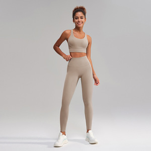 ヨガウェアセット、高級レディースツーピースセット、ハイウエスト、タイトフィット、万能スポーツヨガパンツ、ピーチフィットネスパンツ、ブラジャー