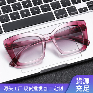 新しいヨーロッパとアメリカのファッショナブルな女性用老眼鏡、大きなフレームのPCスプリングプログレッシブ老眼鏡、高齢者用の高精細フラットメガネ