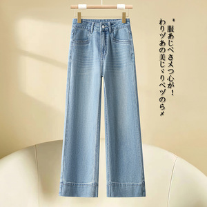 女性用ジーンズ 2025 春夏新作薄手ロングパンツ大きいサイズハイウエストストレートワイドレッグパンツ女性用スリムでルーズ