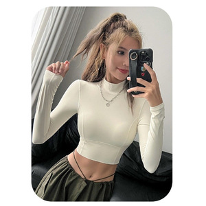 デザイン付き女の子中空フィットネスウェアスポーツスリムで多用途な秋冬ヨガTシャツオフショルダー長袖トップ胸パッド