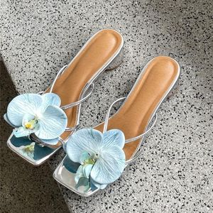 2025 春夏の新スタイルミッドローヒールサンダル蝶マグノリアフラワーサンダル女性のスカートビーチシューズローマ薄いストラップ