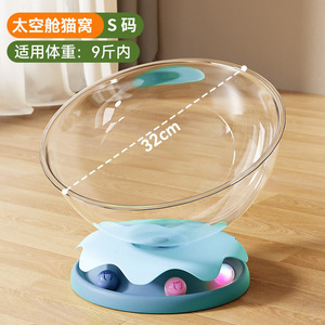 スペースカプセル猫の巣、冬は暖かく、オールシーズン対応、高透明アクリルベルターンテーブル猫のおもちゃペット用品