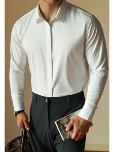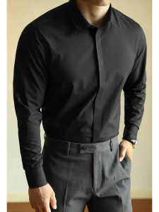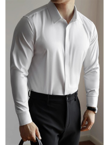 高品质免烫暗门襟男士衬衫纯色易打理商务长袖正装通勤寸衫春夏季