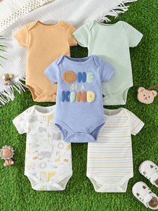 新型の赤ちゃんの半袖は夏のお尻の服のスーツの女の子の服の男の赤ちゃんのかわいいプリントの連体の服の卸売りに登ります。