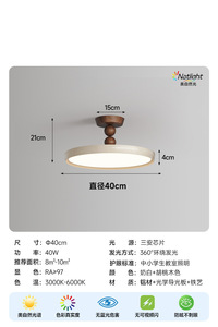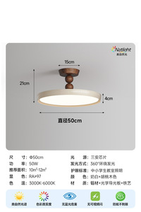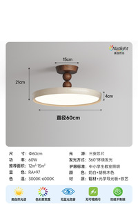 主寝室書斎天井灯中古風胡桃色全スペクトル保護眼知能灯復古児童部屋灯
