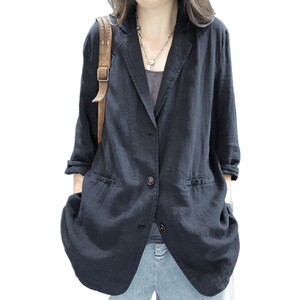 綿麻の婦人服の春秋の上着の女性の新型の亜麻のレトロでゆったりしています。