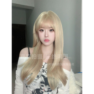 制覇かつらホワイトゴールドロングストレート女性団風日常自然ファッションlolita弾力ネット全頭セット対外貿易