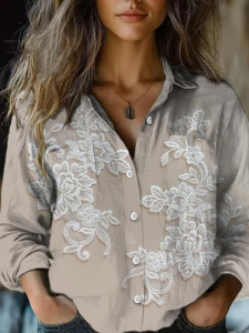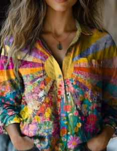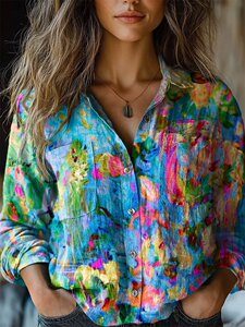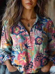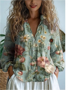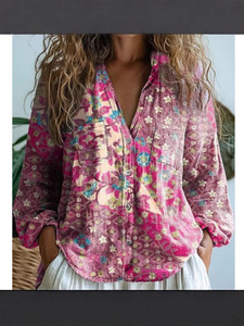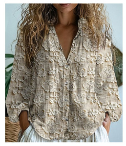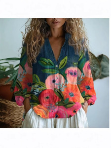 夏の新しいヨーロッパスタイルの3Dプリント抽象的なパターンの女性の長袖シャツは、写真のデザインで提供されます