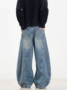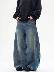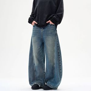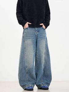 水洗牛仔裤男直筒宽松弯刀阔腿美式高街裤子潮牌痞帅香蕉镰刀长裤