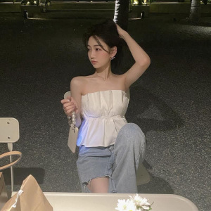 スイートガールバックレスフリルチューブトップ夏アウター2025新作スリムフィットサスペンダーショートトップトレンディ