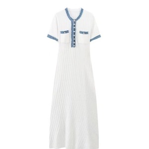 国境を越えた人気のアフリカデニムスプライシングフレンチローブ春夏新作フェイクツーピーススリムニットドレス