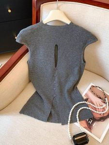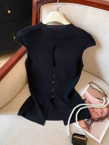 设计感后背镂空小飞袖上衣女夏季2025年新款小衫别致针织t恤