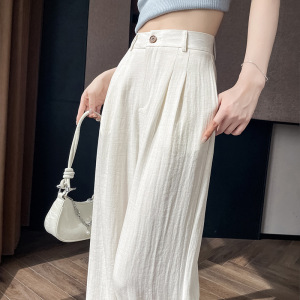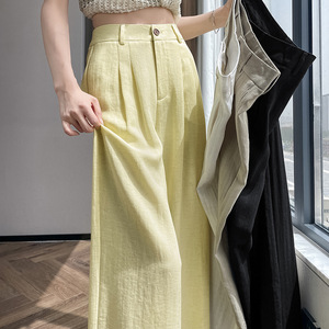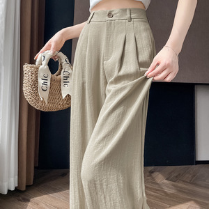 夏季新款高腰亚麻冰丝阔腿裤女2025高级感宽松直筒休闲垂感拖地裤